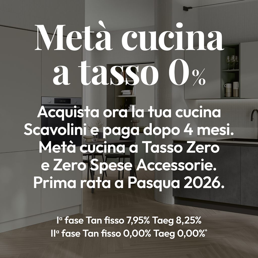Metà cucina a tasso 0 e zero spese accessorie con prima rata a Pasqua 2026